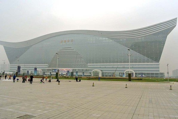 Co ciekawe, w sejsmicznie aktywnym Sichuan nie można było stworzyć typowego wieżowca, więc architekci zdecydowali się na klasyczne proporcje, tylko że w dużej skali: 500 metrów długości, 400 szerokości i „tylko” 100 wysokości.