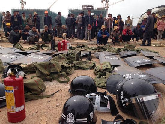 Według lokalnych władz w zeszły wtorek chłopi złapali ośmiu z grupy robotników przysłanych aby wznowić prace. Pobili ich i potem aby postraszyć oblali benzyną. Tego samego dnia chłopi przeprowadzili szturm na miejsce budowy, gdzie starli się z wynajętymi przez dewelopera ochroniarzami. Dwóch chłopów zostało zabitych. Wtedy też czterech mężczyzn wcześniej oblanych benzyną miało zostać podpalonych.