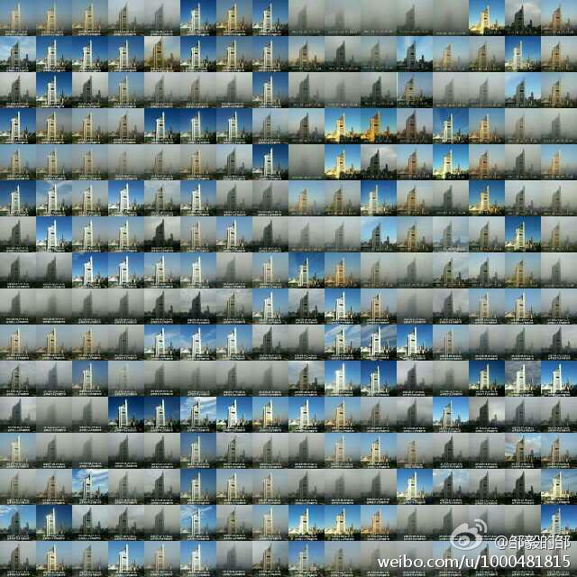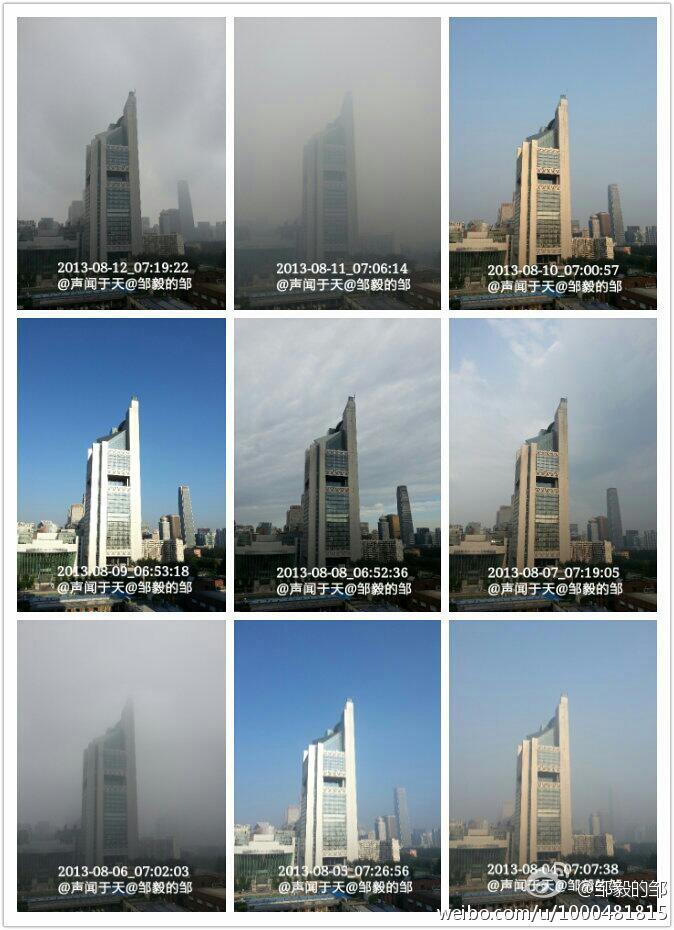 Zou Yi fotografował przez rok codziennie, mniej więcej o tej samej porze, z tego samego ujęcia budynek Pekińskiej Telewizji. Codziennie też kolejne zdjęcie publikował na mikroblogu Weibo. W efekcie powstała ciekawa kronika zanieczyszczenia w stolicy ChRL.
