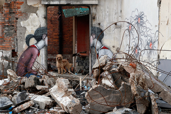 Hieroglif 拆 (chāi), który tłumaczy się zazwyczaj jako „rozmontować”, jest stosowany w ChRL do oznaczania budynków przeznaczonych do wyburzenia. W Szanghaju kwartał domów oznakowanych 拆 posłużył francuskiemu artyście ulicznemu Julianowi Malland jako tło do jego obrazów.