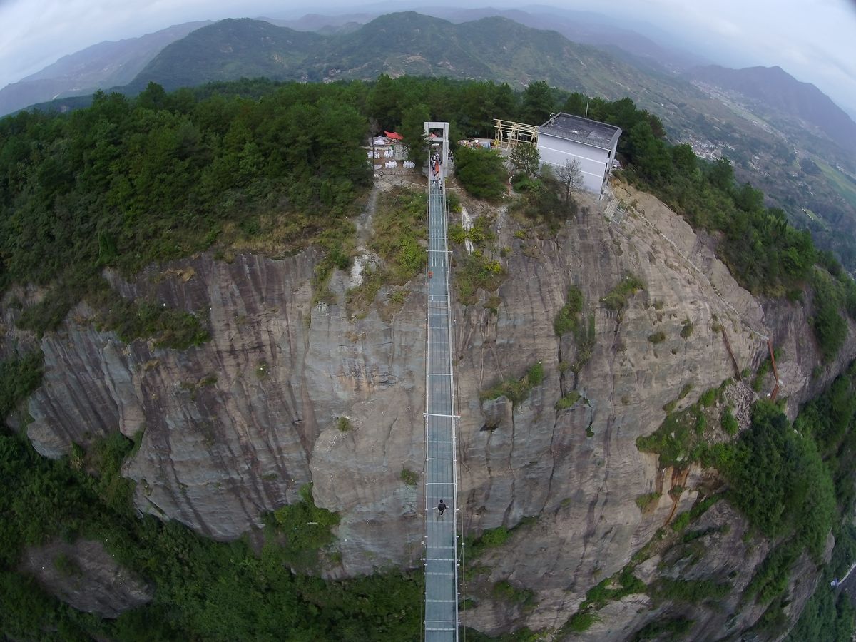 Najdłuższy wiszący most ze szkła… a przynajmniej ze szklaną podłogą został otwarty w Parku Narodowym Shiniuzhai w Prowincji Hunan. „Most Odważnych” został zawieszony na wysokości prawie 180 metrów i ma długość niespełna 300.