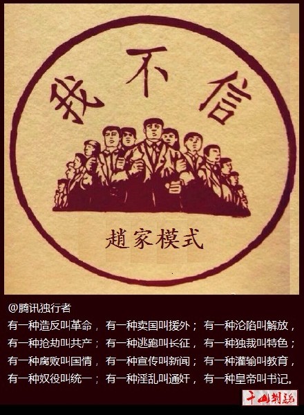 Wykorzystanie przez internautów do krytyki KPCh pracy Lu Xun jest dla władzy podwójnie bolesne. „Rodzina Zhao” nie tylko świetnie ilustruje dzisiejsze realia, ale też sam Lu Xun jest uznawany przez partię za jednego z „postępowych pisarzy i komunistę”**, mimo że sam Lu Xun był bardziej lewicującym (społecznie) liberałem (politycznie) niż marksistą.