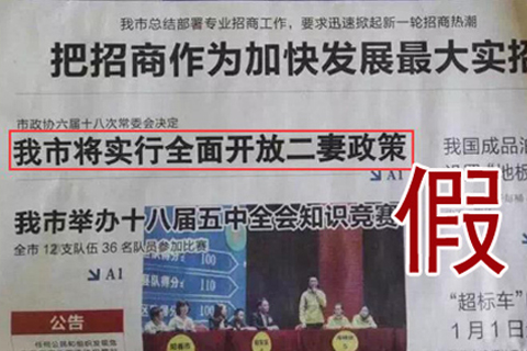 Na inkryminowanym meme’ie przerobiono nagłówek w lokalnej gazecie, „Dzienniku Yangjiang”, tak by mówił on o „wprowadzeniu polityki dwóch żon”. Smaczku sprawie dodaje fakt, iż policję powiadomiła sama redakcja gazety.