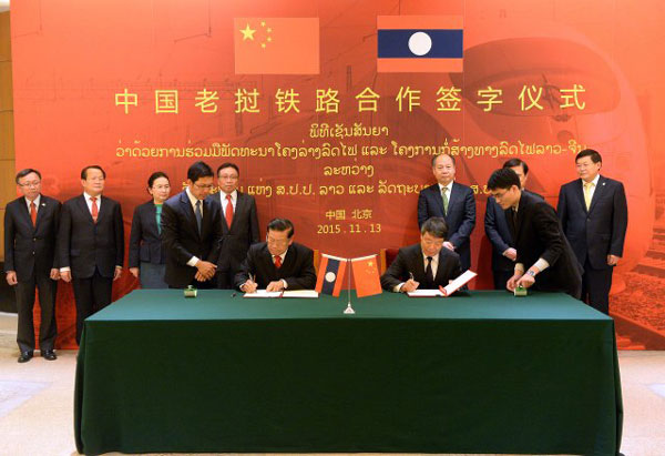 Podpisanie porozumienia o współpracy międzyrządowej ws. kolejnictwa Laosu i ChRL (13 listopad 2015).