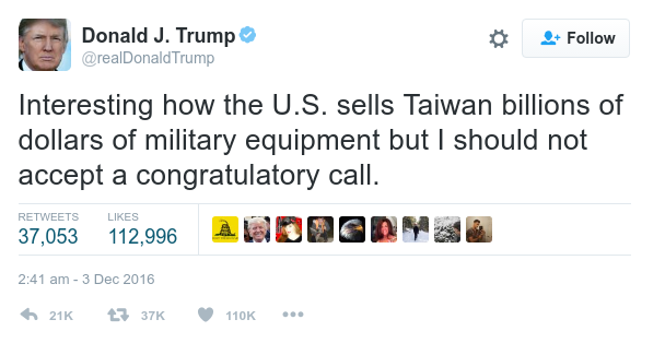 trump1Podkreślenie, że to Tsai zadzwoniła nie ma większego znaczenia. To oczywiste, że to inni przywódcy dzwonią do nowo wybranego prezydenta z gratulacjami. Ciekawsze jest to, co nastąpiło później.