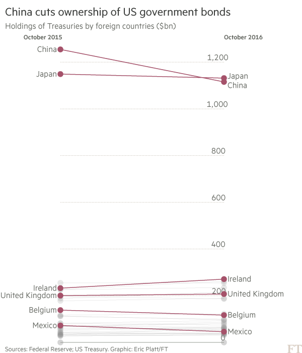 Ograniczenie inwestycji w dług amerykański wiąże się ze spadkiem w ogóle rezerw walutowych ChRL, które od 2014 roku zmalały już o jedną czwartą. Co wynika z potrzeby ratowania kursu RMB, który spadł w tym samym okresie o 15%, ale ma też związek z „pompowaniem” rodzimych instytucji finansowych oraz próbą powstrzymania odpływu kapitału z kraju.