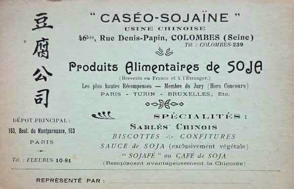 Na przełomie 1908 i 1909 roku rozpoczęła działalność w La Garenne-Colombes pod Paryżem fabryka „Usine de la Caséo-Sojaïne”. Nie tylko była to pierwsza na Zachodzie fabryka produkująca mleko sojowe i tofu, ale też pierwszy zakład na świecie robiący to na skalę przemysłową.