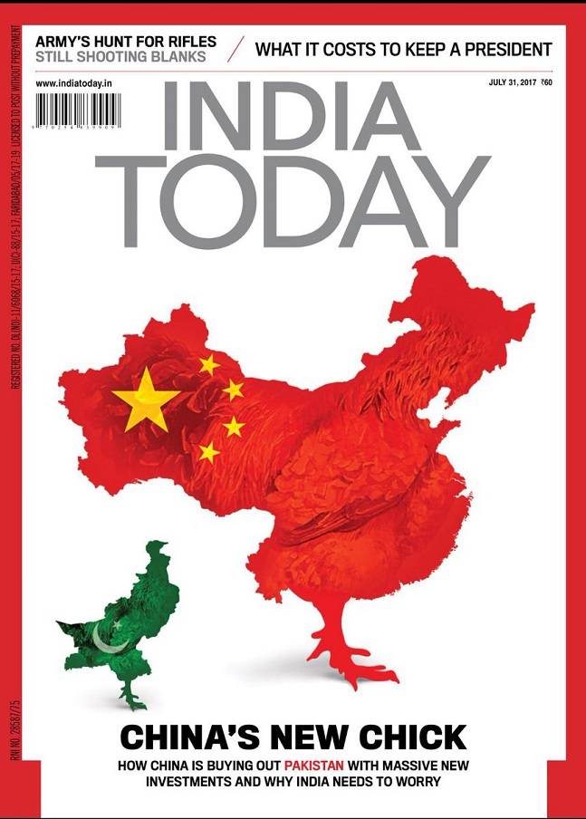 Okładka przedstawia mapę konturową ChRL z dorysowanymi nogami, by przypominały one kurę, obok stoi mniejszy kurczak – Pakistan. Wszelkie wątpliwości rozwija nie tylko tytuł „China’s New Chick” (Nowy Kurczaczek Chin), ale też flagi ChRL i Pakistanu.