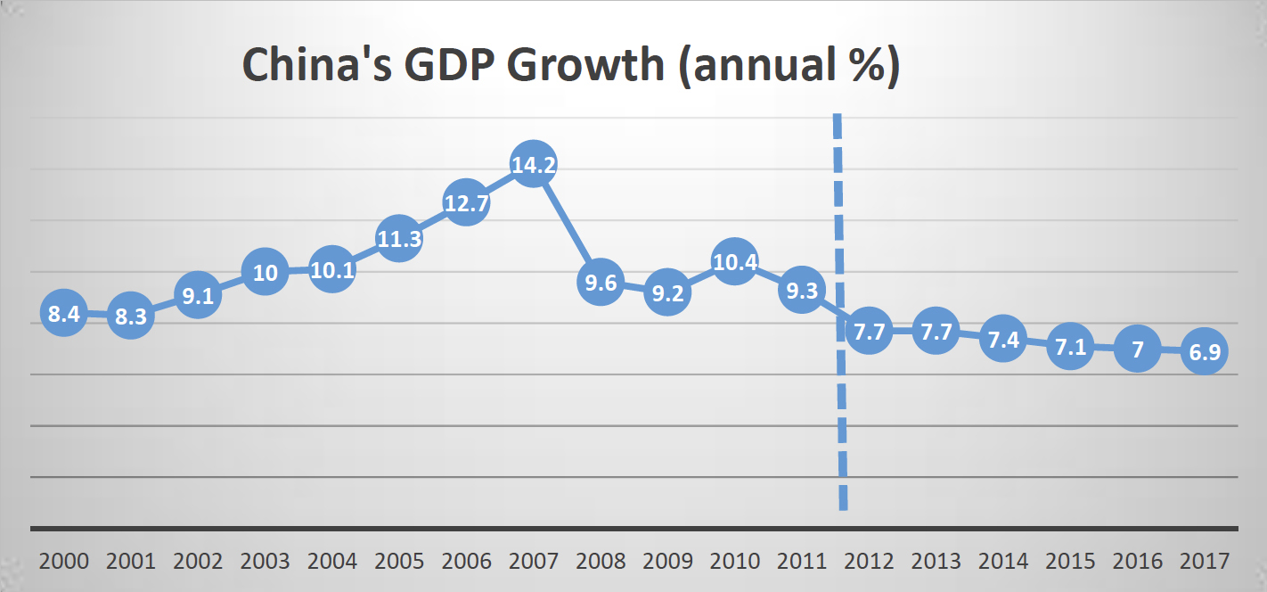Wzrost PKB w IV kwartale 2017 (źródło: Narodowe Biuro Statystyczne Chin).
