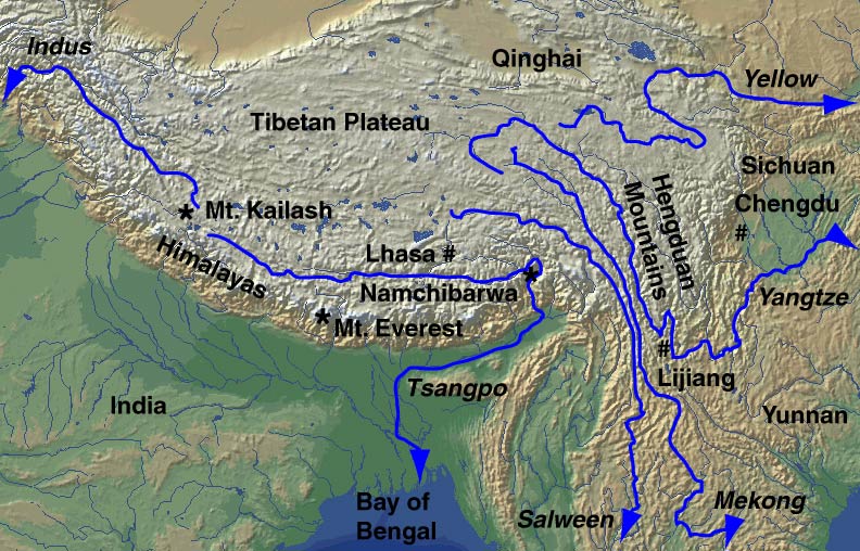 ChRL kontroluje jednak Płaskowyż Tybetański, działający jak gigantyczna misa przechwytująca opady, które częściowo trafiają do systemu rzecznego kierującego się w stronę Chin (Żółta Rzeka i Jangcy). Pozostałe rzeki regionu płyną jednak na południe i zasilają albo Mekong albo Indus.