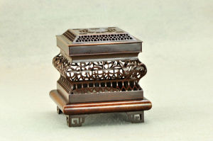 2 熏籠 rodzaj paleniska, w którym trzymano żarzące się węgle i zabezpieczony zdobioną kratą. Powszechnie używany do ogrzewania pałaców w czasach Tang.