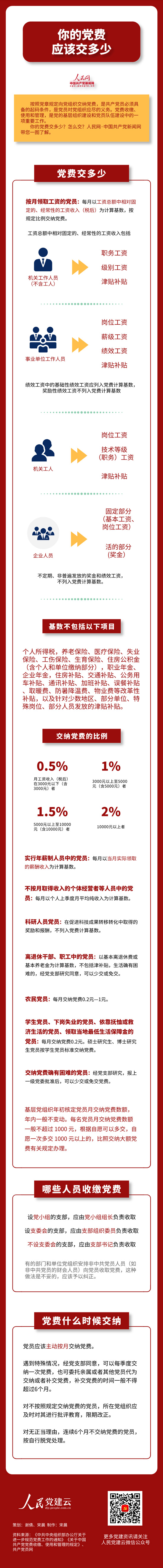 Portal wiadomości partyjnych, działający w ramach „Dziennika ludowego” – organu KC KPCh, przygotował infografikę (poniżej), opisującą zobowiązania członków partii. Znajdziemy tam też wiadomość, ile wynoszą składki członkowskie w KPCh. Okazuje się, że partia nie tylko opodatkowała członków, ale też wprowadziła podatek progresywny. Członkowie, którzy zarabiają miesięcznie 3000 RMB lub mniej, muszą oddać kompartii 0,5% dochodów, czyli maksymalnie 15 RMB. Zarabiający między 3 001-5 000 RMB muszą już odprowadzić 1%, maksymalnie 50 RMB. 5 001-10 000 oddadzą 1,5%, maksymalnie 150 RMB. Ciekawie robi się powyżej 10 000 RMB, ponieważ, ci muszą wciąż odprowadzić 2%, a nie ma już górnej granicy. Ile więc płacą najbogatsi członkowie KPCh? Ile płaci Ren Zhengfei, szef Huawei, członek co najmniej od 1978 roku albo Jack Ma, założyciel Alibaba – nie wiadomo kiedy wstąpił do KPCh – najbogatszy Chińczyk warty ponad 40 mld USD? Na pewno płacą niemało, ale zyski, jakie czerpią z członkostwa są nieporównywalne.