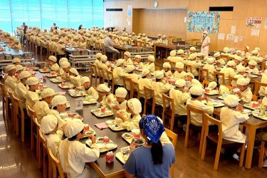 Przerwa obiadowa w japońskiej szkole podstawowej…