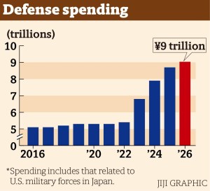 Japoński rząd ogłosił dzisiaj, że projekt budżetu obronnego na rok fiskalny 2026 (zaczyna się 1 kwietnia) został ustalony na rekordowym poziomie 9,04 bln JPY (58 mld USD) i przewyższa zeszłoroczne, także rekordowy poziom 8,7 bln JPY. Rok finansowy 2026 jest czwartym rokiem pięcioletniego planu wzmocnienia obronności Japonii o wartości 43 bln JPY. Główny powód to rosnące zagrożenie ze strony Chin i Korei Północnej. Trzeba jednak zaznaczyć, że budżet ministerstwa obrony obejmuje również wydatki związane z utrzymaniem baz wojskowych USA.