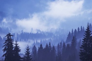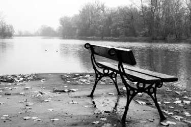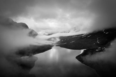 wiatrem niesiona mgła zakrywa drugi brzeg.