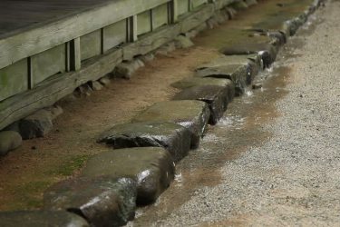 Ulewny, nieustający deszcz nadrzeczną trawę na brzegach wygładził,