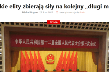Dzisiaj odsyłam do mojego tekstu napisanego dla Klubu Jagielońskiego pod tytułem: Chińskie elity zbierają siły na kolejny „długi marsz”.